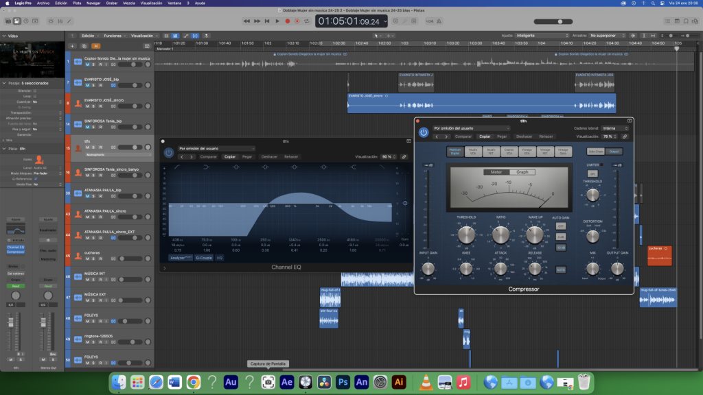 - A todos los diálogos le hemos añadido un ecualizador que suprime los graves para aportar claridad y eliminar cualquier sonido del audio.